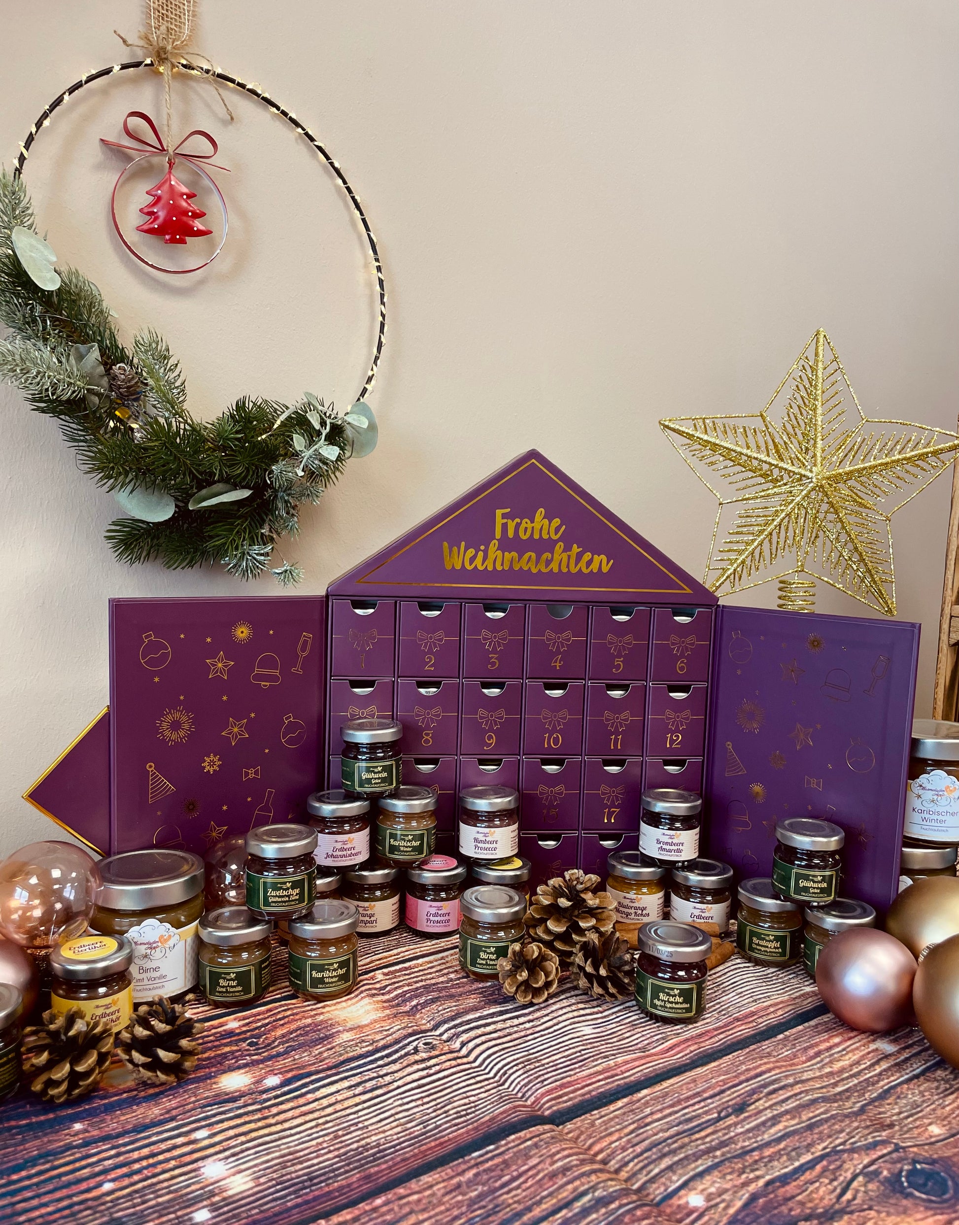Das perfekte Geschenk für jeden Marmeladenliebhaber! Starte in den köstlichsten Advent überhaupt und freu' dich auf 24 x 40g exzellente Marmelade in verschiedensten Sorten. In diesem Jahr haben wir wieder fleißig wie eine Biene gearbeitet, um für euch unsere beliebtesten Marmeladen zusammenzustellen: 24 Tage - 24 Marmeladen- 24 verschiedene Sorten!